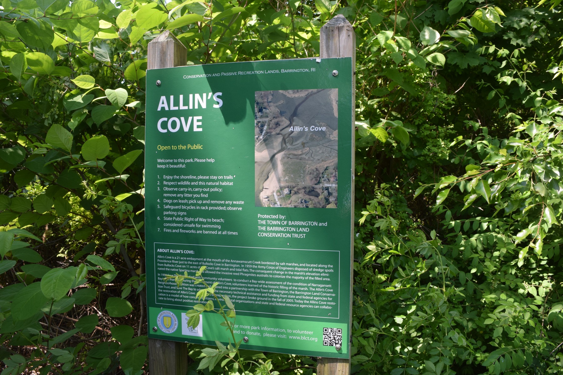 In the late 1990s, restoration efforts began through a partnership with neighborhood advocates, Save the Bay, the Town of Barrington, and the Barrington Land Conservation Trust. The Coastal Resource Management Council obtained a reparation agreement from the U.S. Army Corps of Engineers, resulting in a $760K project to relocate the channel in the cove and restore the salt marsh.