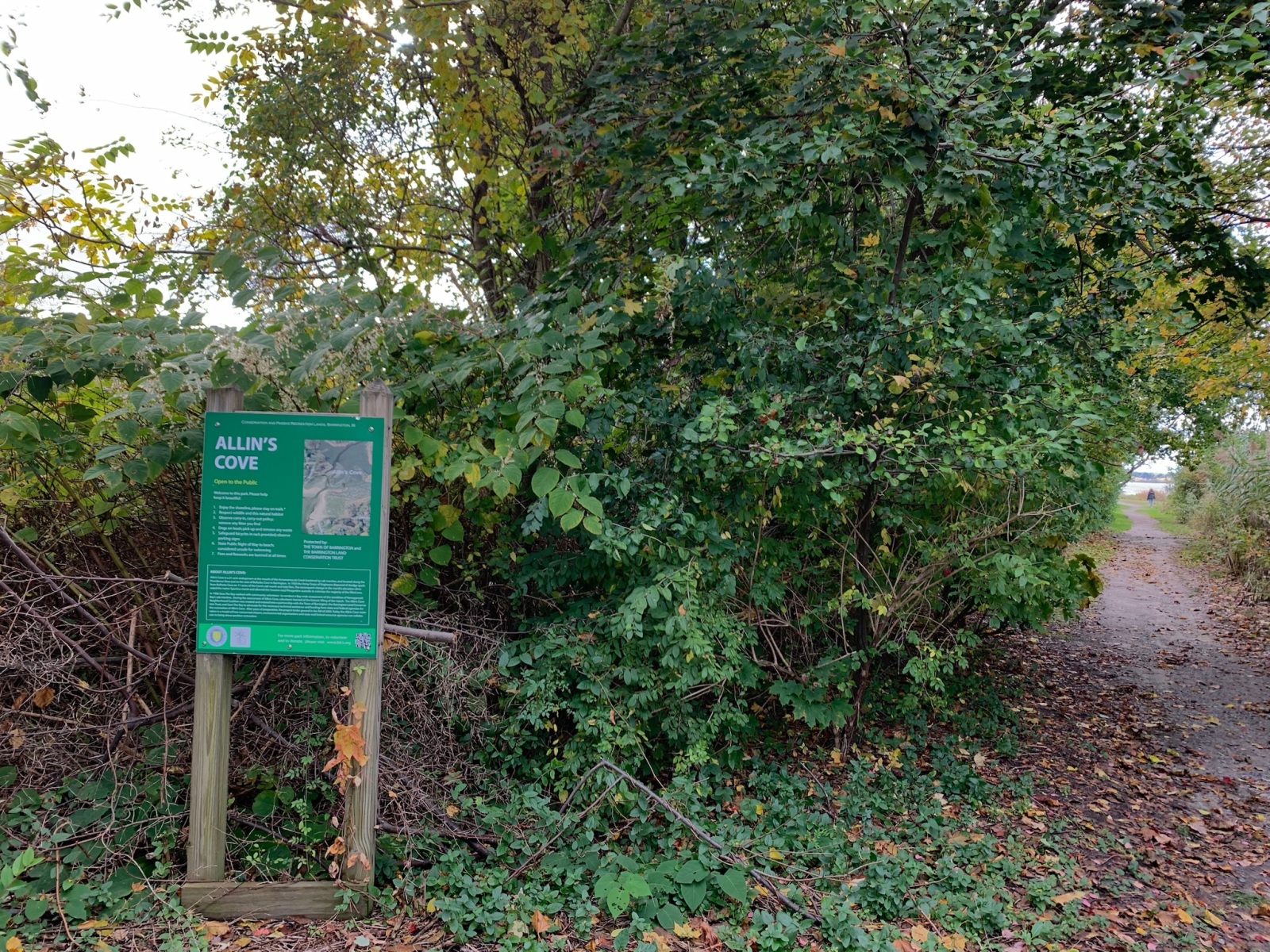 The entrance to Allin’s Cove Conservation Area is located at the bottom of Third Street in Barrington, RI. Parking is not allowed on Third Street. See below for parking recommendations.